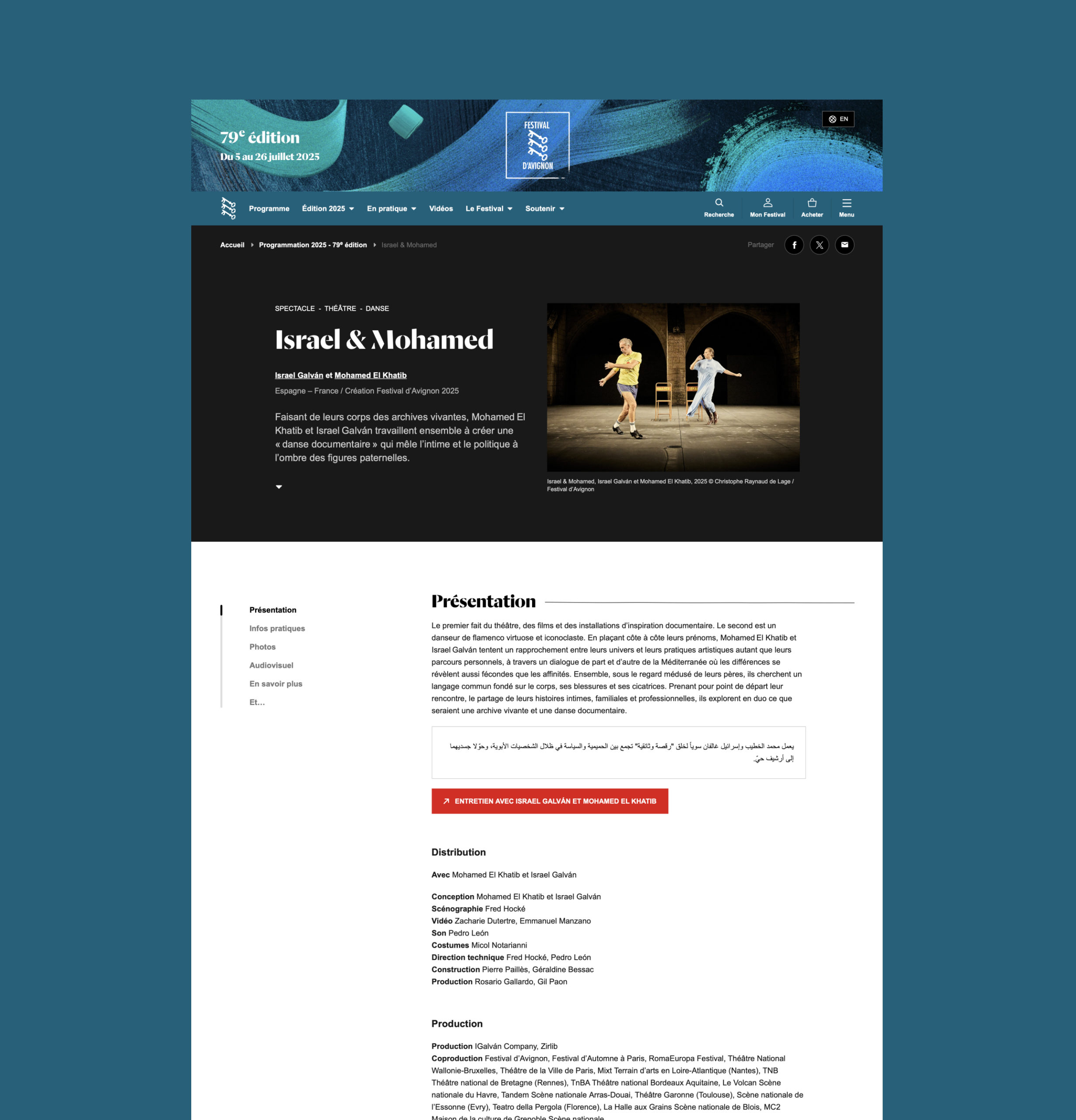 - Produire et partager du contenu autour des œuvres (entretien avec les artistes, extraits des pièces, Rencontres du Festival …)