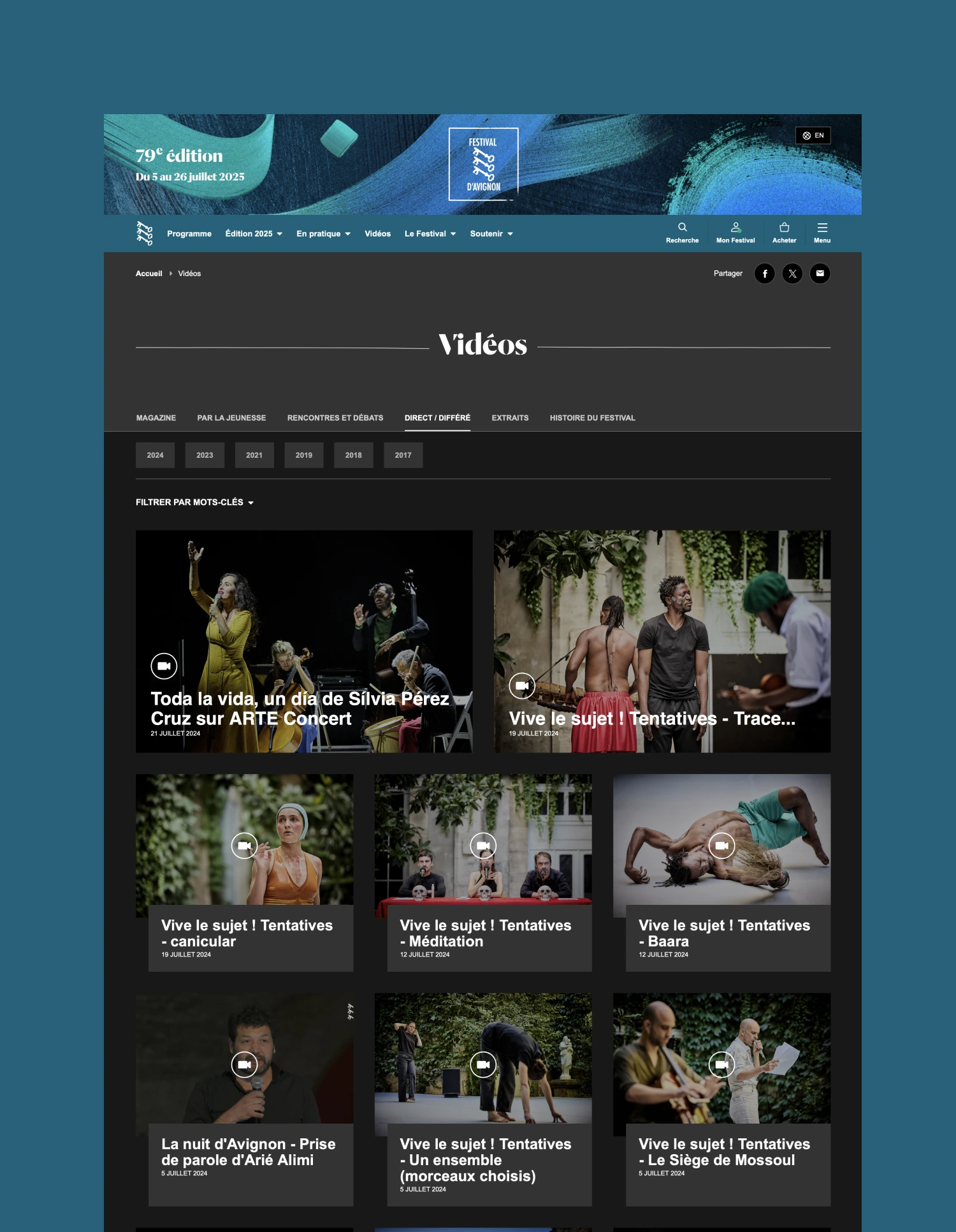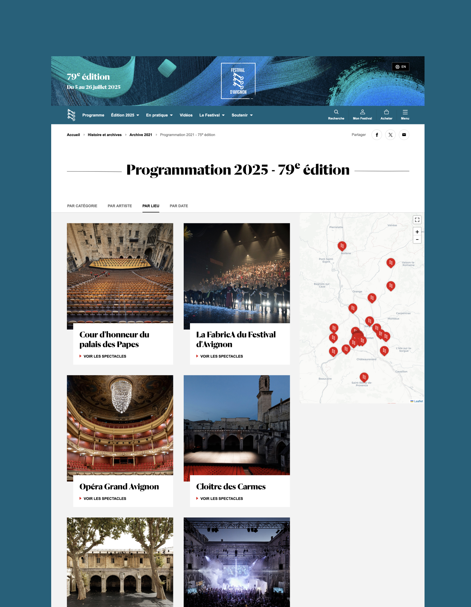 Le Festival d’Avignon est la plus importante manifestation de théâtre et de spectacle vivant d’Europe. Nous accompagnons le festival d’Avignon depuis 2009 dans ses outils numériques. En 2020, nous avons réalisé la 3ᵉ refonte de son site internet.