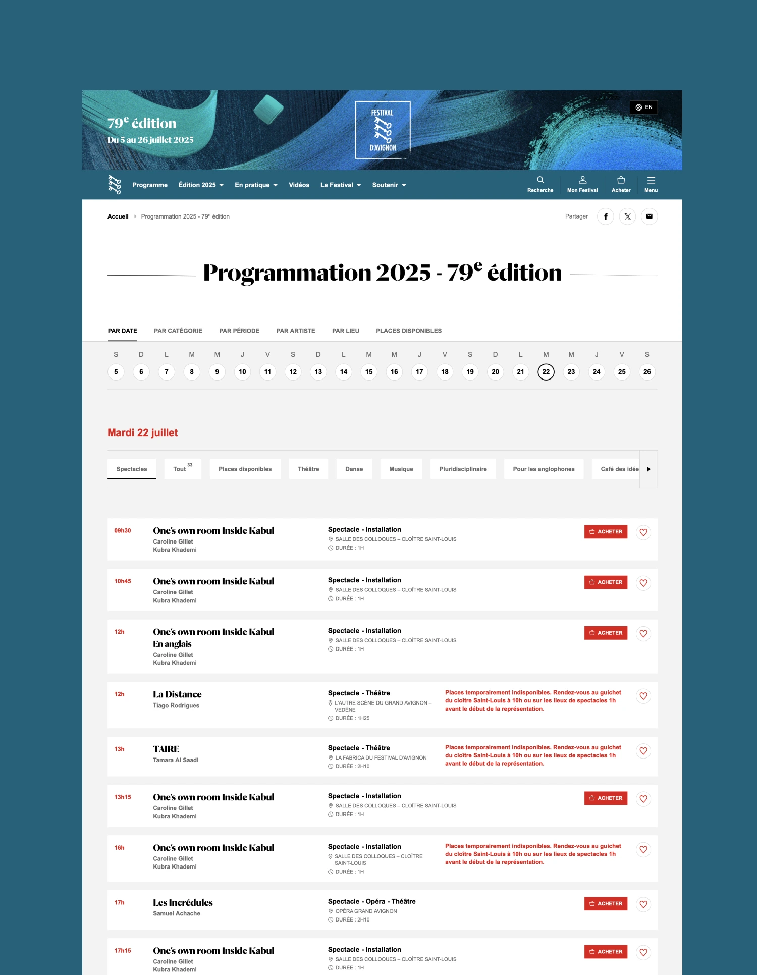 - Clarifier les disponibilités de places de spectacles sur le site, l’app et la billetterie.