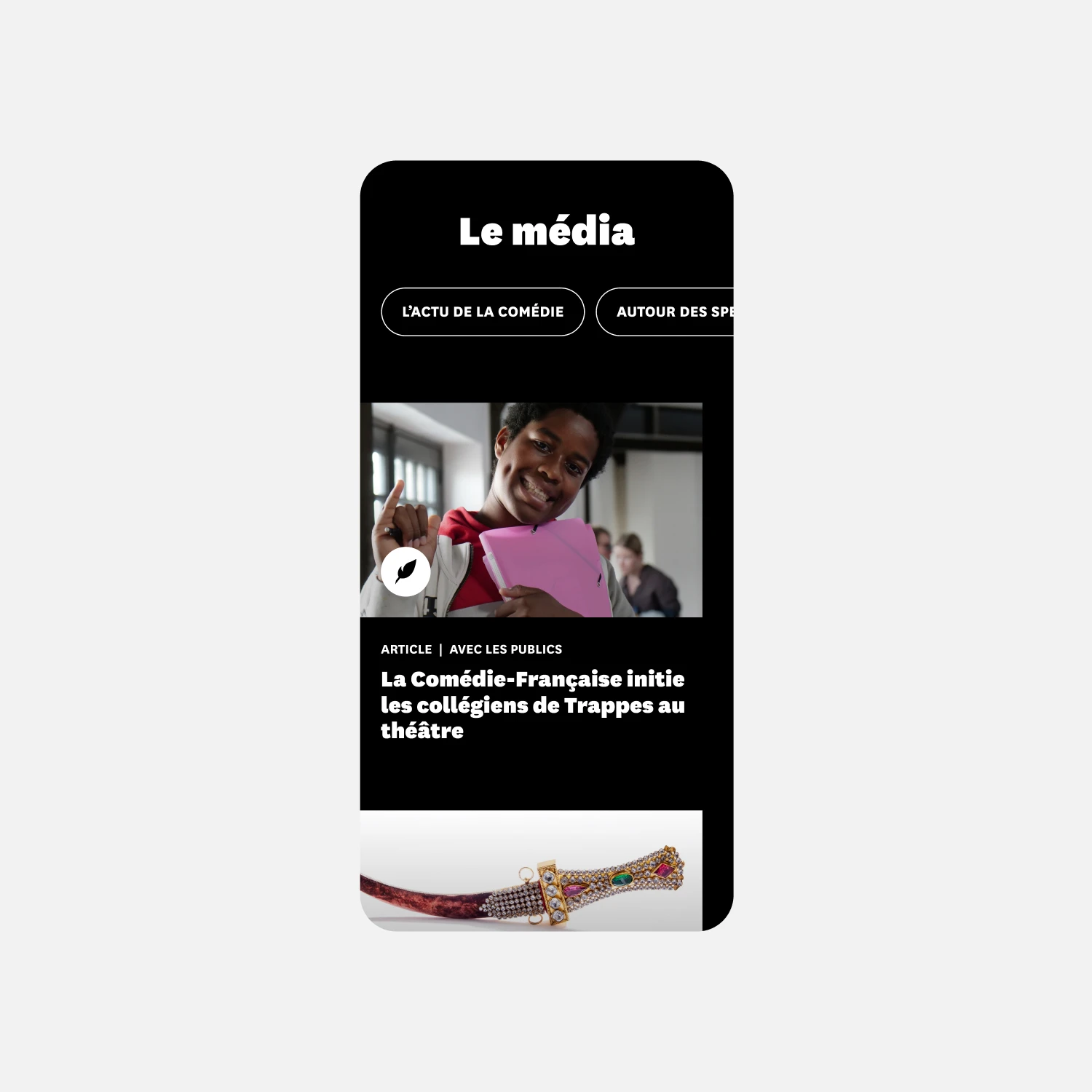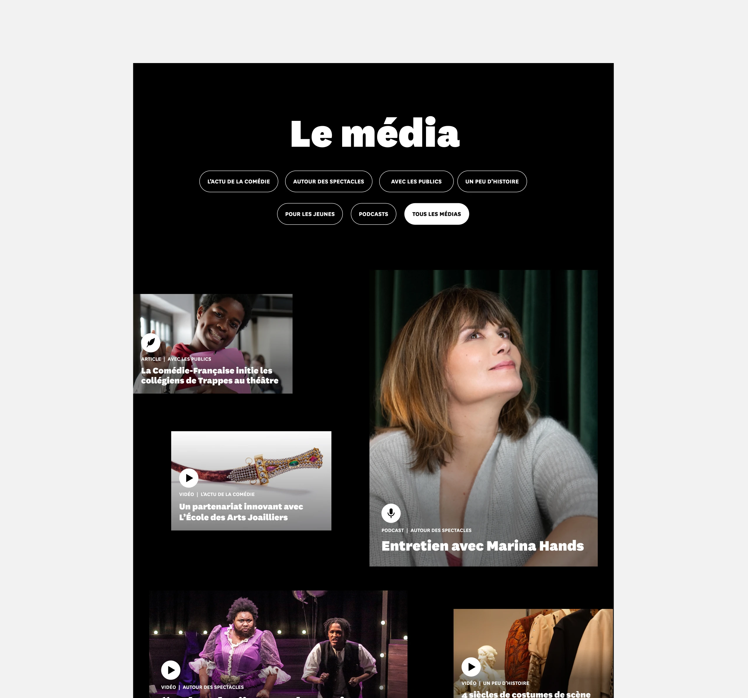 Cette refonte offre l’opportunité de proposer des formats média plus variés, en accord avec les usages actuels : article, interviews, podcast, VOD… « Le média », qui a sa propre rubrique, remonte sur la page d’accueil et sur les fiches spectacles pour enrichir l’expérience au-delà de la programmation.