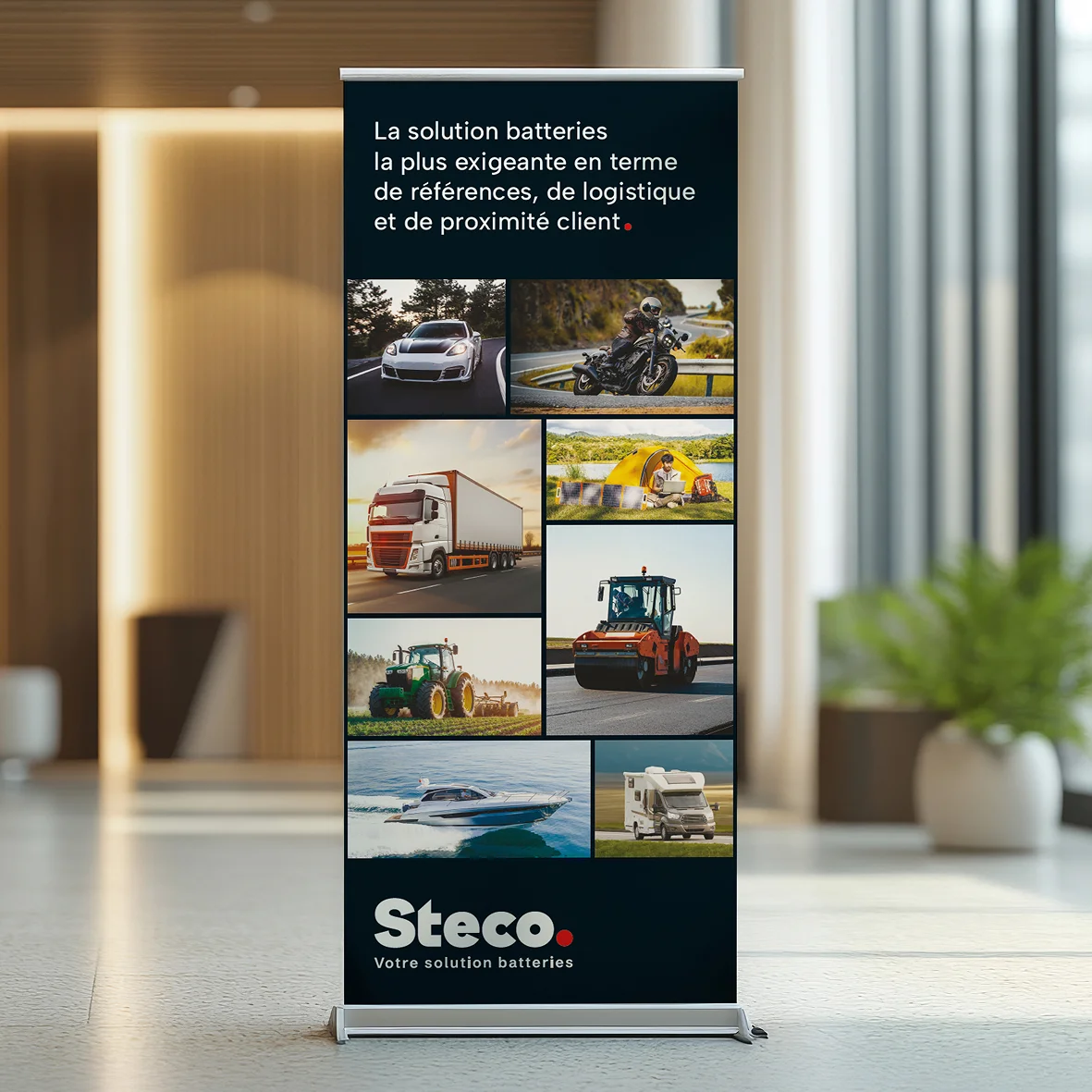 - Repenser l’univers visuel de cinq marques de batteries vendues par Steco pour renforcer leur lisibilité auprès des clients.